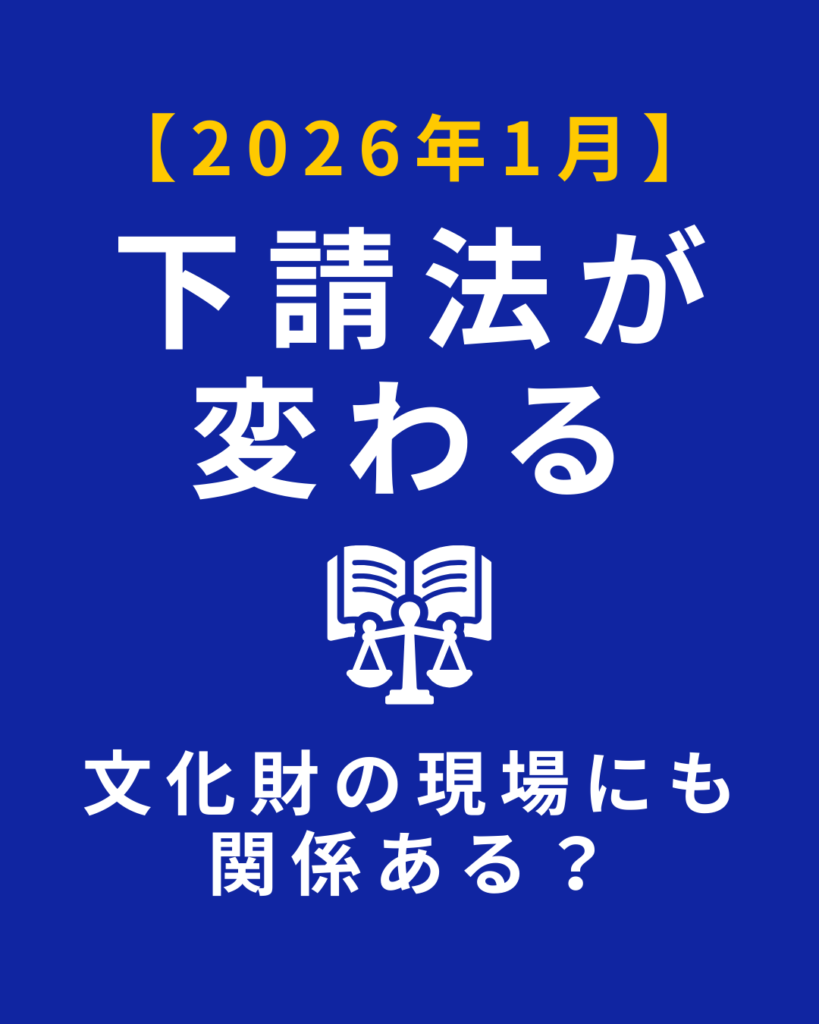また、取適法では公正取引委員会だけでなく、事業所管省庁による「面的執行」が強化されており、文化財分野では 文化庁・関係行政機関との連携も想定されます。